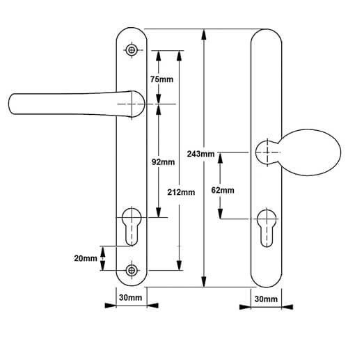 TSS Lever Moveable Pad Offset UPVC Multipoint Door Handles - 92/62mm PZ - Sprung - 215mm Screw Centres