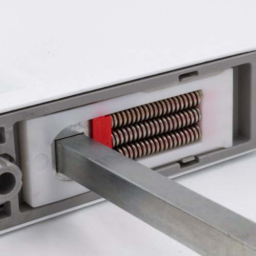 They are supplied as a pair complete with spring cassettes, an 8mm square spindle & 2 colour co-ordinated bolt through M5 screws to suit door thickness 70mm.