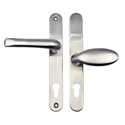 TSS Grade 304 Stainless Steel Lever Moveable Pad Offset UPVC Multipoint Door Handles – 92/62mm PZ Sprung 210mm Screw Centres