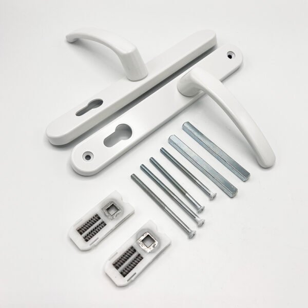 The 92/62mm Offset PZ TSS lever/lever multipoint door handle is a high-quality multipoint door handle that is available in a range of finishes, including white, black, polished chrome, silver and polished brass.