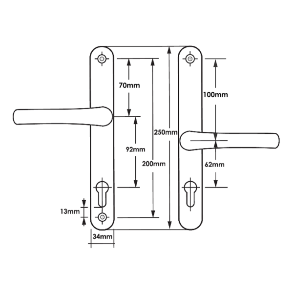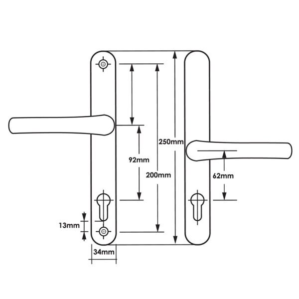 TSS Offset Lever Lever Multipoint Door Handles 92/62mm PZ – Sprung – 200mm Screw Centres