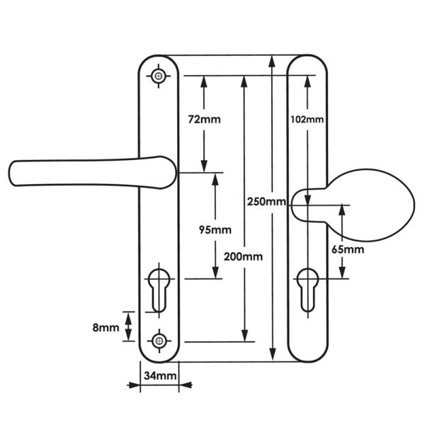 Be the first to review “TSS Offset Lever Moveable Pad Multipoint Door Handles – 95/65mm PZ – Sprung – 200mm Screw Centres”